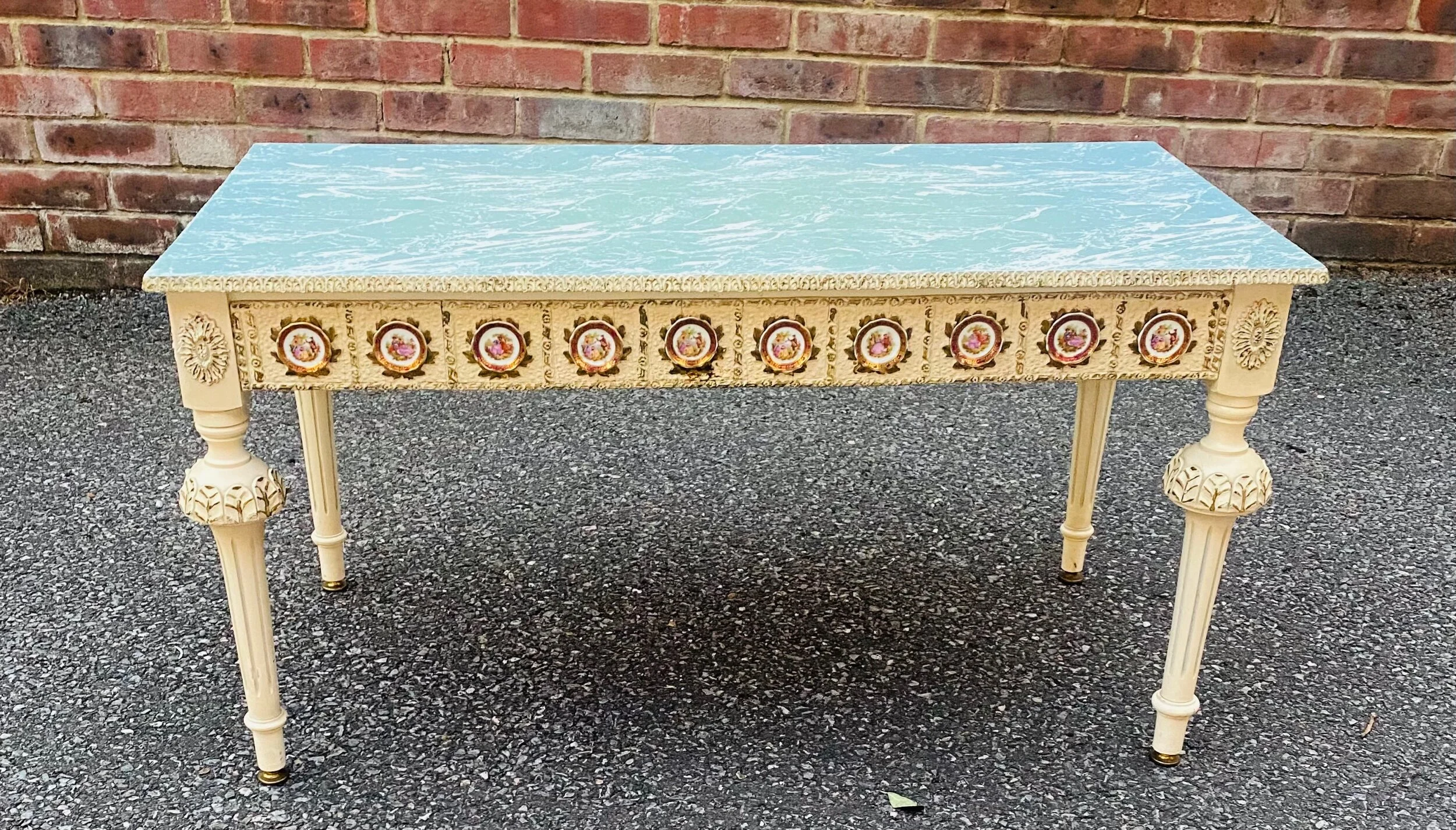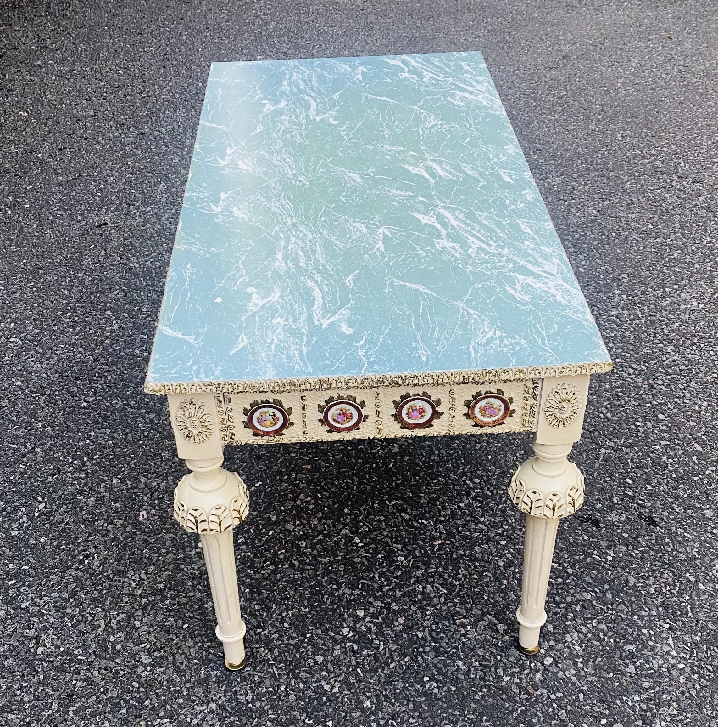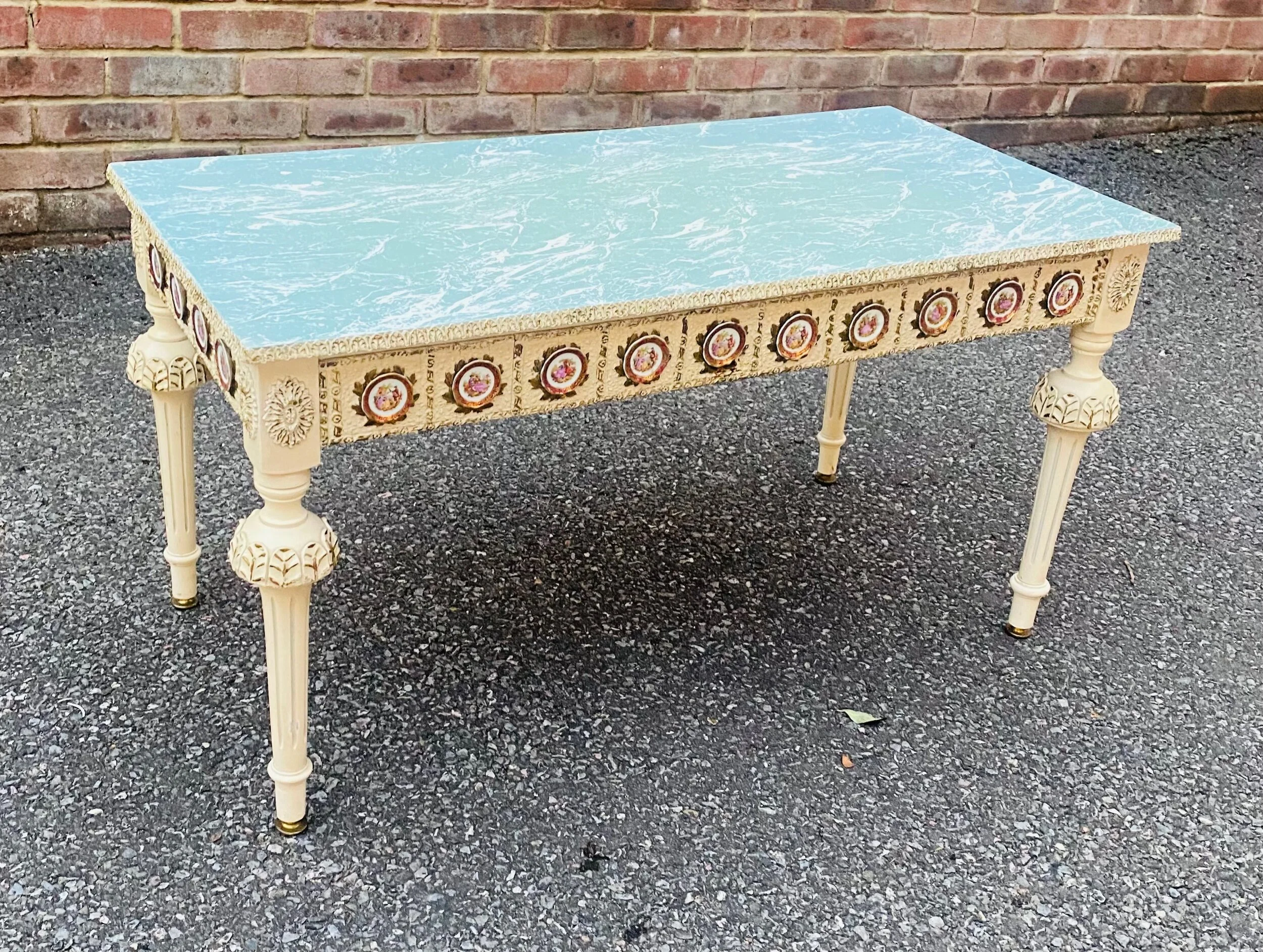 Shop › FRENCH 19th CENTURY COFFEE TABLE Image 1 of 3 Image 2 of 3 Image 3 of 3 FRENCH 19th CENTURY COFFEE TABLE Sale Price: £240.00 Original Price: £345.00 Sold Out A stunning Nineteenth Century Coffee table with lovely marble-style design and enamel attachments detailed on the piece. Sold Out Added! A stunning Nineteenth Century Coffee table with lovely marble-style design and enamel attachments detailed on the piece.